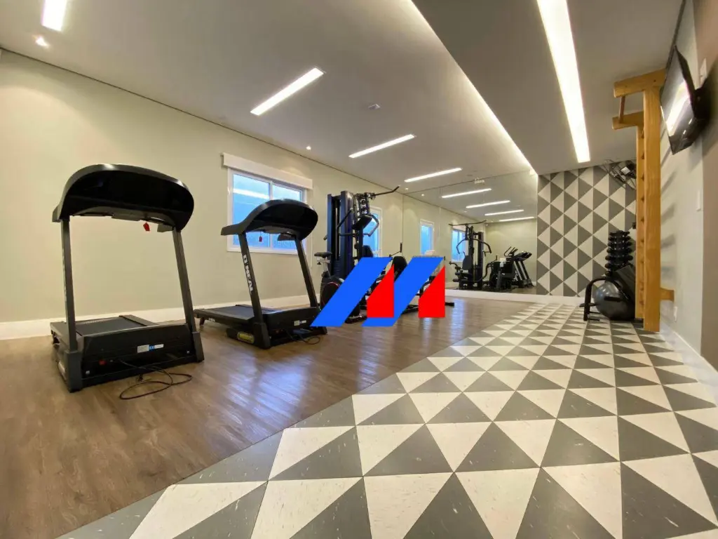 Condomínio com piscinas adulto e infantil, churrasqueira, playground, quadra poliesportiva, salão de festas e fitness center.
