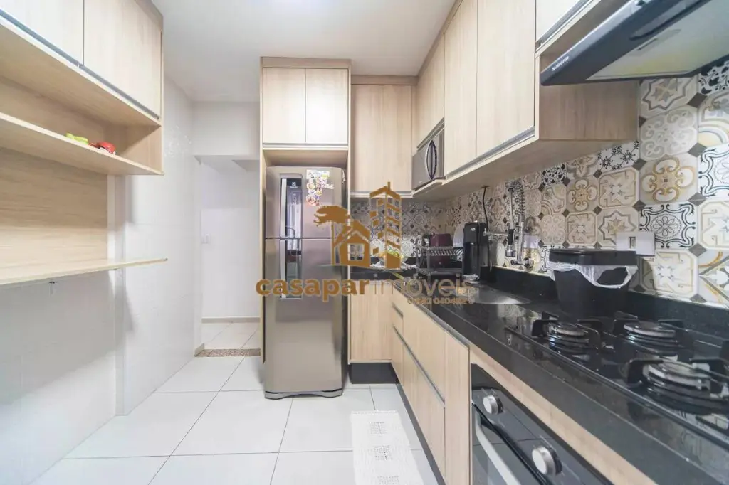 Cozinha com planejados, área de serviço com armários