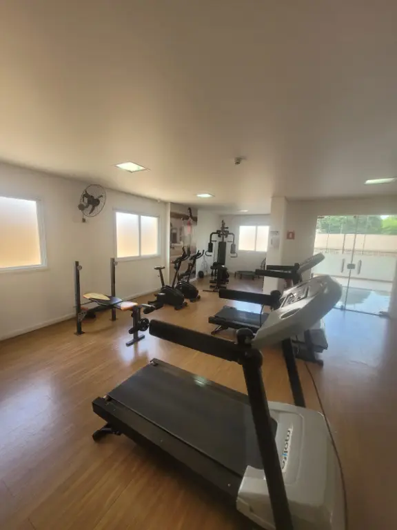 O condomínio oferece academia, quadra poliesportiva, salão de festas, churrasqueira, playground e brinquedoteca