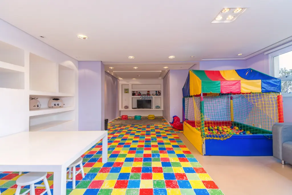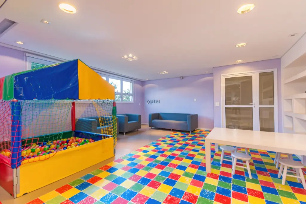 Salão de Jogos; Salão de Festas; Fitness Center; Sala de massagem; Sauna seca; Espaço Gourmet com churrasqueira; Spa com hidromassagem; Brinquedoteca; Playground; Piscina adulto com deck molhado e bar; Piscina infantil.