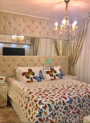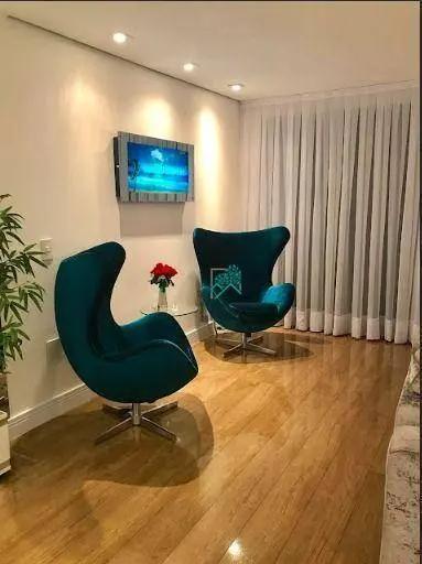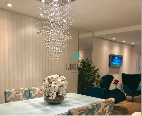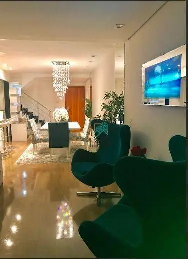 Duplex de 170m², porteira fechada, com sala 2 ambientes, lavabo, cozinha planejada, área de serviço, sacada com deck, 2 suítes climatizadas (master com hidromassagem), closet e 3 vagas.