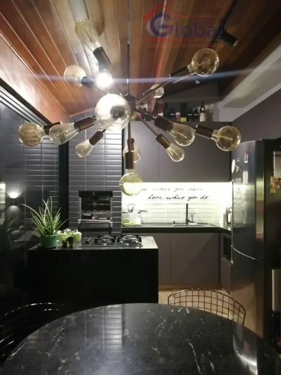 2 dormitórios com 2 suítes, sendo 1 com closet; sala; 2 lavabos; cozinha gourmet; churrasqueira; área de serviço, 2 vagas de garagem.