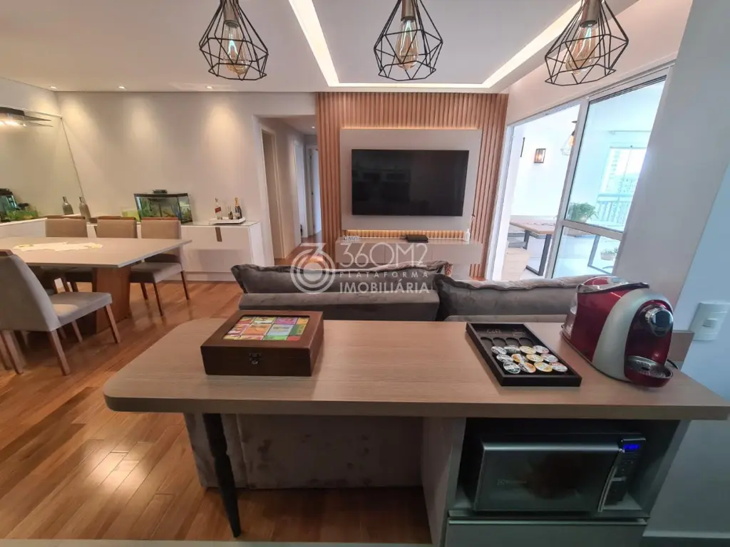 Com 3 dormitórios, sendo 3 suítes, possui 4 banheiros, 2 vagas de garagem, 2 salas, encontra-se mobiliado, localizado em condomínio.