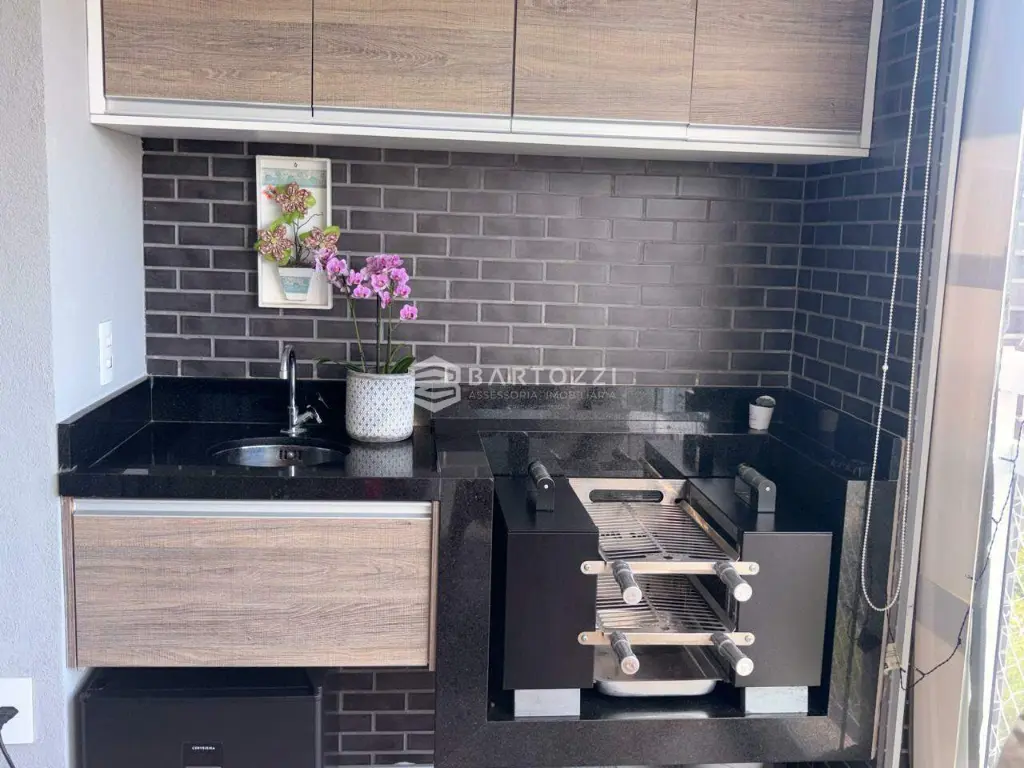 - Sacada com churrasqueira e armários planejados