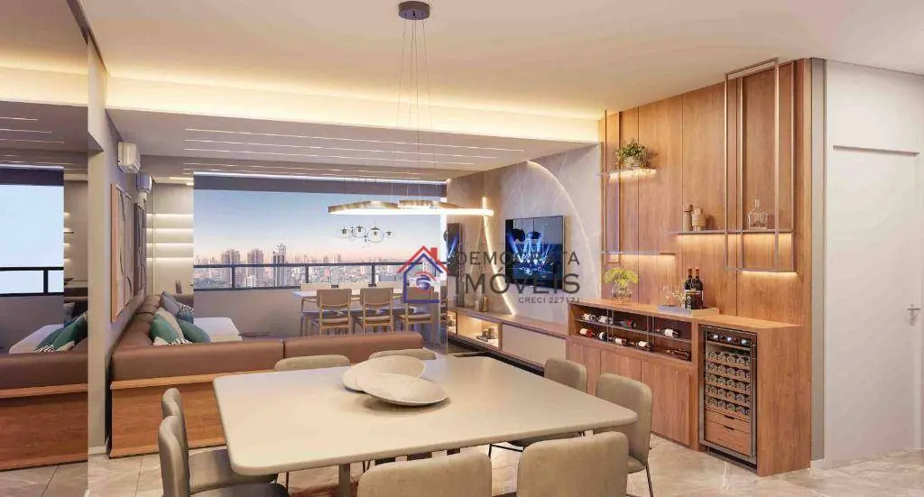 Apartamento com 151m² de área útil. Possui 3 suítes, lavabo, ampla sala integrada com terraço gourmet envidraçado e infraestrutura para ar condicionado, cozinha aberta pronta para a instalação de ilha central, área de serviço e 3 vagas de garagem sendo 1 delas com depósito privativo.