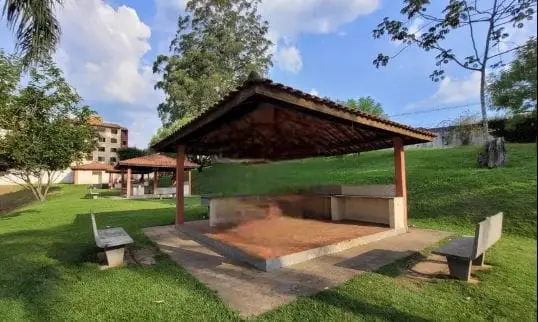 Condomínio oferece portaria 24 horas, quadra esportiva, salão de festas e playground.