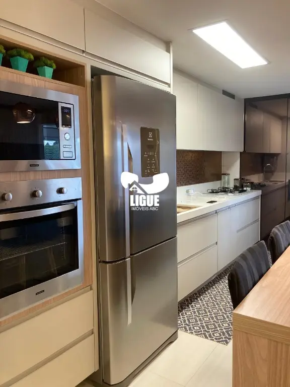 Lindo Apartamento no Residencial Varandas Se você busca um lar moderno, espaçoso e pronto para receber a sua família, este apartamento é a escolha certa. Com planta diferenciada, possui ambientes bem distribuídos, revestimento em piso vinílico, pintura nova e ótima entrada de luz natural. A sala ampla para dois ambientes se integra à sacada gourmet envidraçada, equipada com churrasqueira ecológica - um convite para momentos especiais. A cozinha estilo americana traz praticidade, contando com armários planejados, forno, cooktop, coifa e filtro. Na área íntima são 3 dormitórios, sendo 1 suíte com armários planejados e cabeceira de casala Os banheiros têm box de vidro e a lavanderia é integrada à cozinha, oferecendo praticidade no dia a dia. O condomínio garante segurança com portaria 24 horas e lazer completo para toda a família. Excelente localização: próximo à Avenida Pereira Barreto, a apenas 5 minutos do Centro de Santo André, com fácil acesso a São Bernardo do Campo, Parque Central, Hospitais Brasil e Mário Covas, Shopping ABC e transporte público. Não perca esta oportunidade. Entre em contato e agende sua visita!