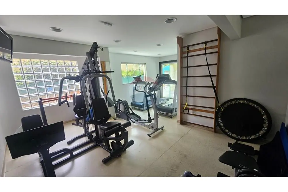 Condomínio com piscina, sauna, academia, salão de festas.