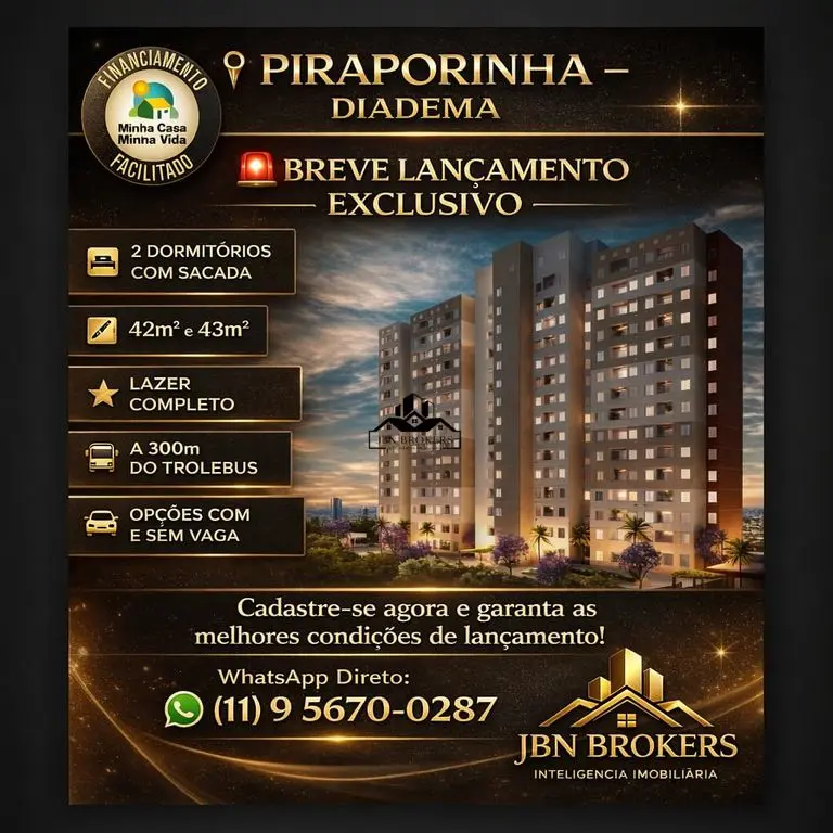Se você quer sair do aluguel e morar em uma das regiões mais valorizadas de Diadema, essa é a sua chance de entrar antes da abertura oficial de vendas.