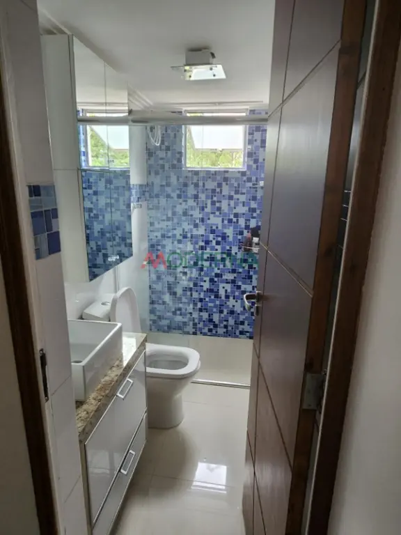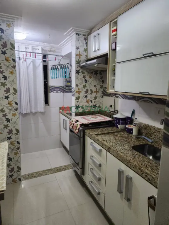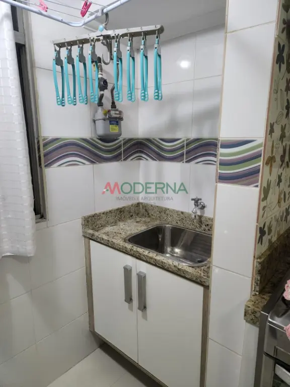 O apartamento possui **piso em porcelanato em todos os ambientes**, trazendo mais elegância e facilidade na limpeza. A cozinha conta com **detalhes decorativos nos azulejos** e o banheiro possui **pastilhas decorativas na parede**, proporcionando um toque moderno ao espaço. O imóvel é **mobiliado**, ideal para quem deseja mudar sem grandes preocupações.