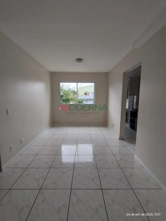 Apartamento bem distribuído, com **2 dormitórios**, **sala ampla para 2 ambientes**, **cozinha funcional**, **área de serviço**, **banheiro social** e **1 vaga de garagem**.
