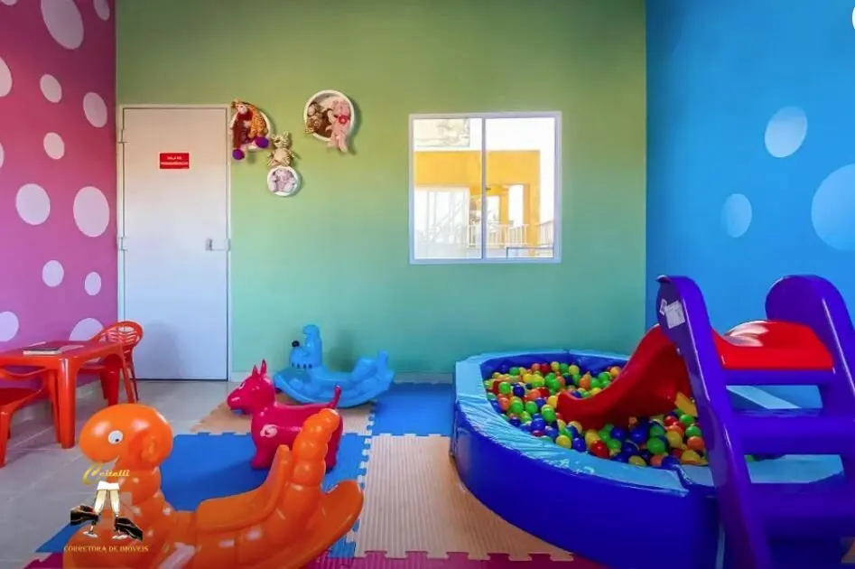 Lazer com churrasqueira, sala~o de festas, playground, sala de jogos, brinquedoteca.