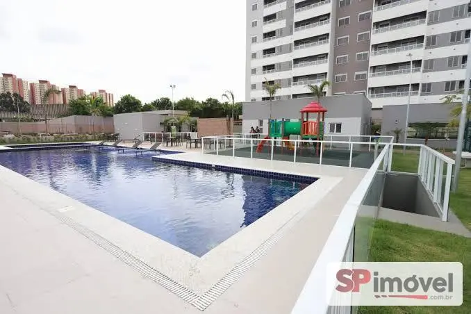 Condomínio com piscina, quadra, academia, salão de festas, espaço pet e mercado.