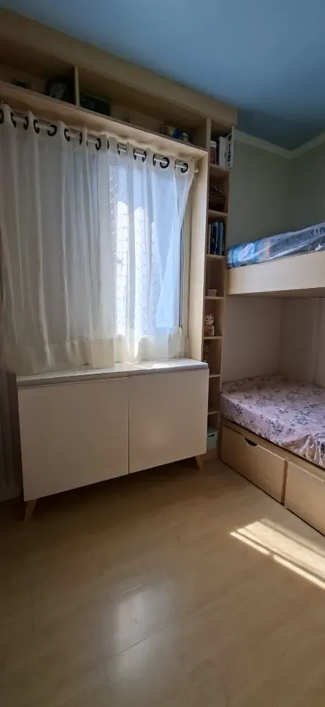 Móveis planejados nos quartos, cozinha, lavanderia e banheiro.