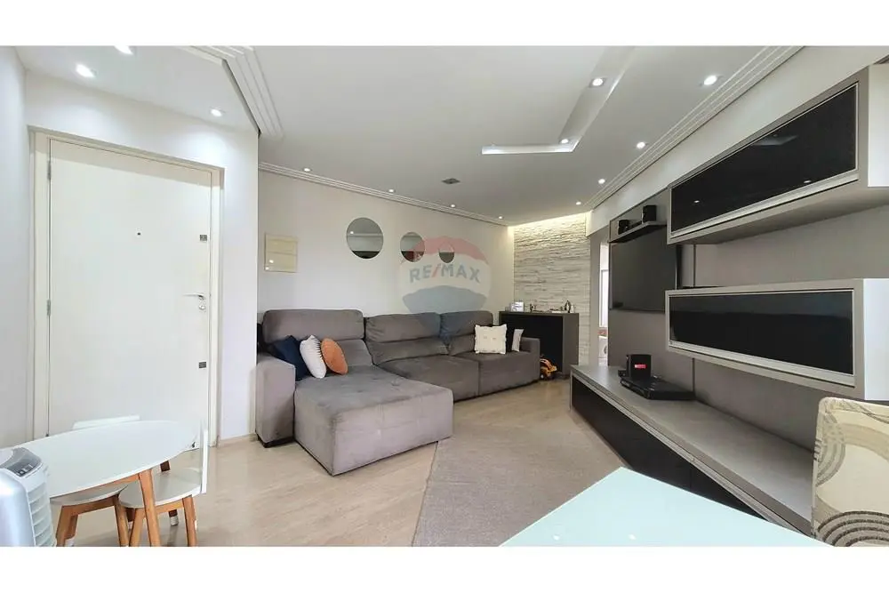 O apartamento possui 2 dormitórios, sendo 1 suíte, planta bem distribuída e ambientes iluminados. A sala integra estar e jantar e se conecta à varanda, trazendo mais ventilação e luminosidade ao ambiente.