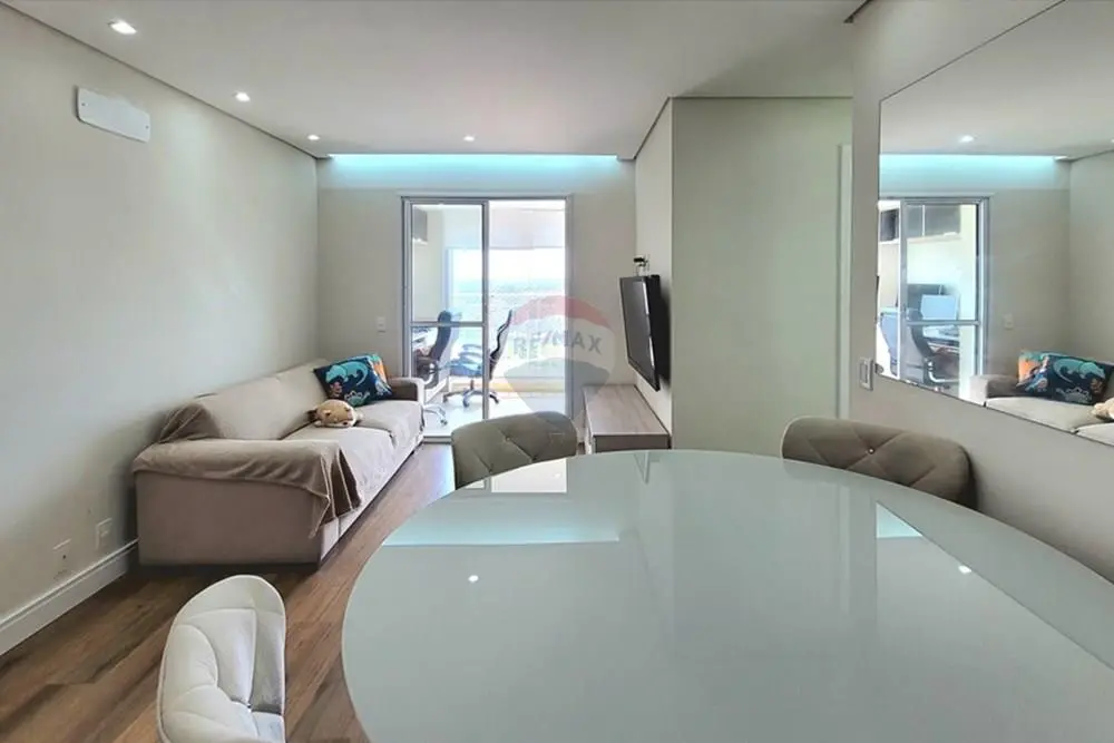 Sala iluminada que se conecta diretamente à Varanda.