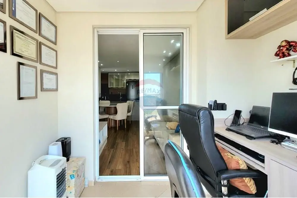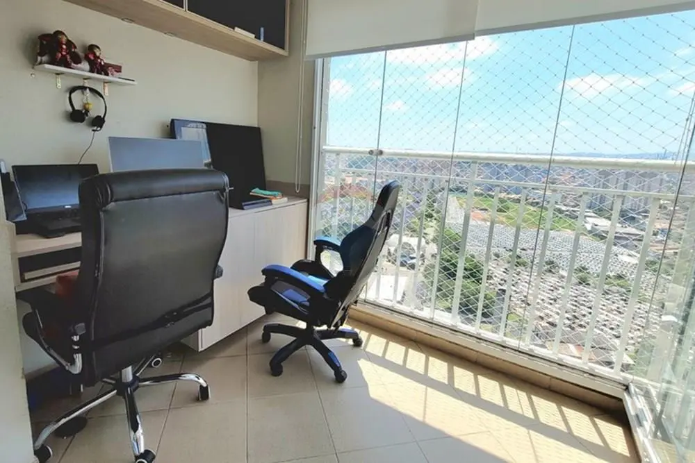 A varanda é um destaque, atualmente utilizada como um inspirador Home Office, perfeito para trabalho remoto ou momentos de relaxamento.