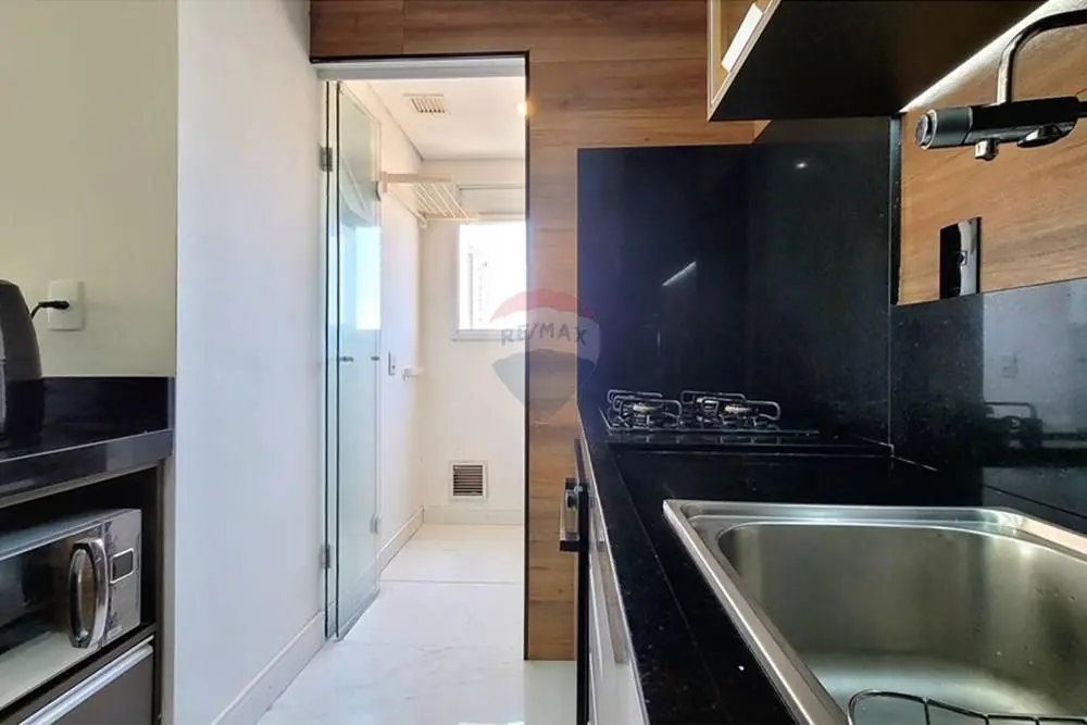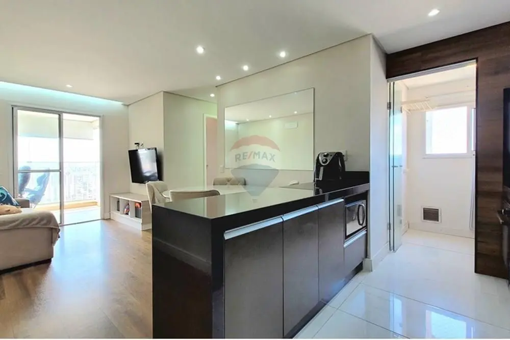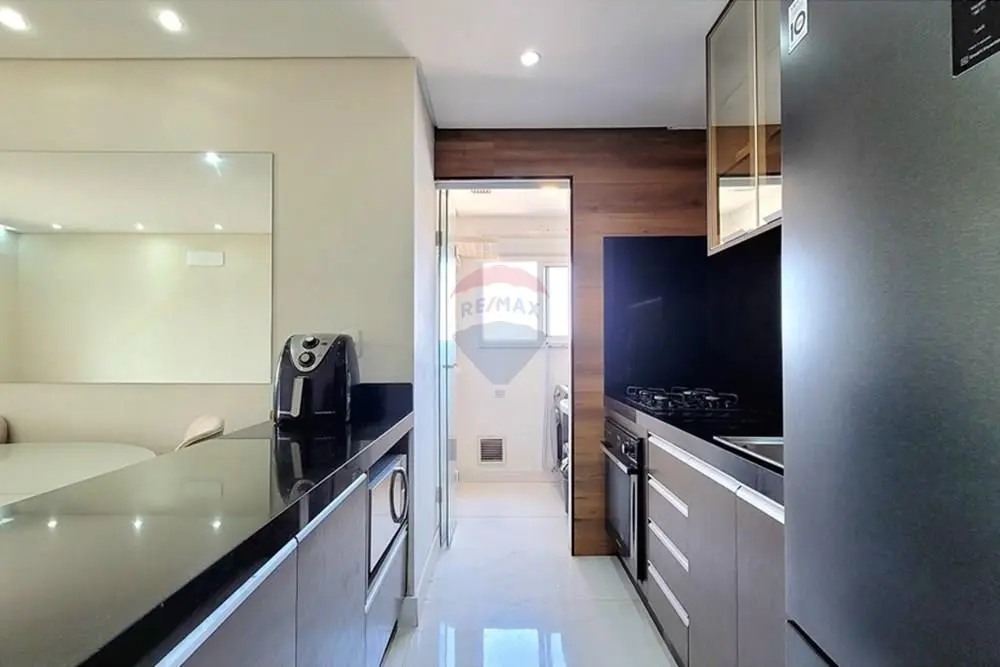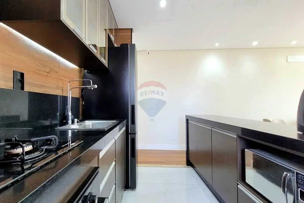 Cozinha com design inteligente, equipada e integrada à sala de estar, ideal para o convívio social.