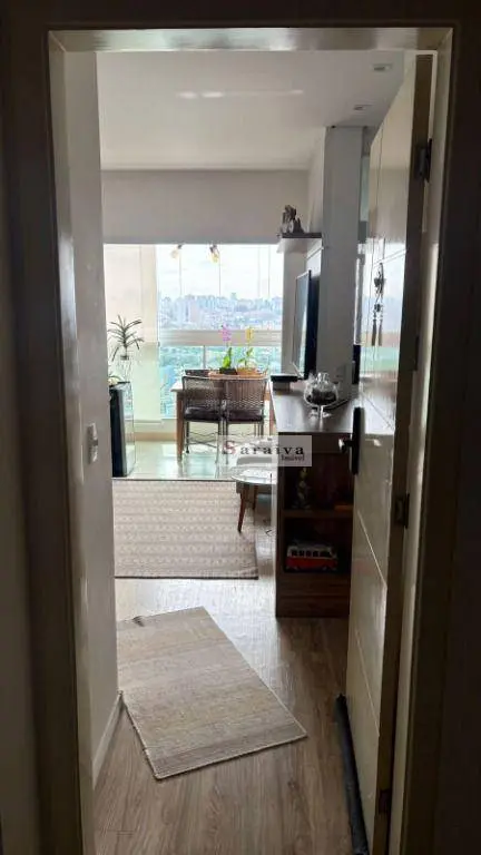 Apartamento 52m², possui 1 dormitório com acesso á varanda, com armários planejados na cozinha. A sala é ampla, integrada com varanda, todo em piso viníico com teto rebaixado, iluminação e 1 banheiro.