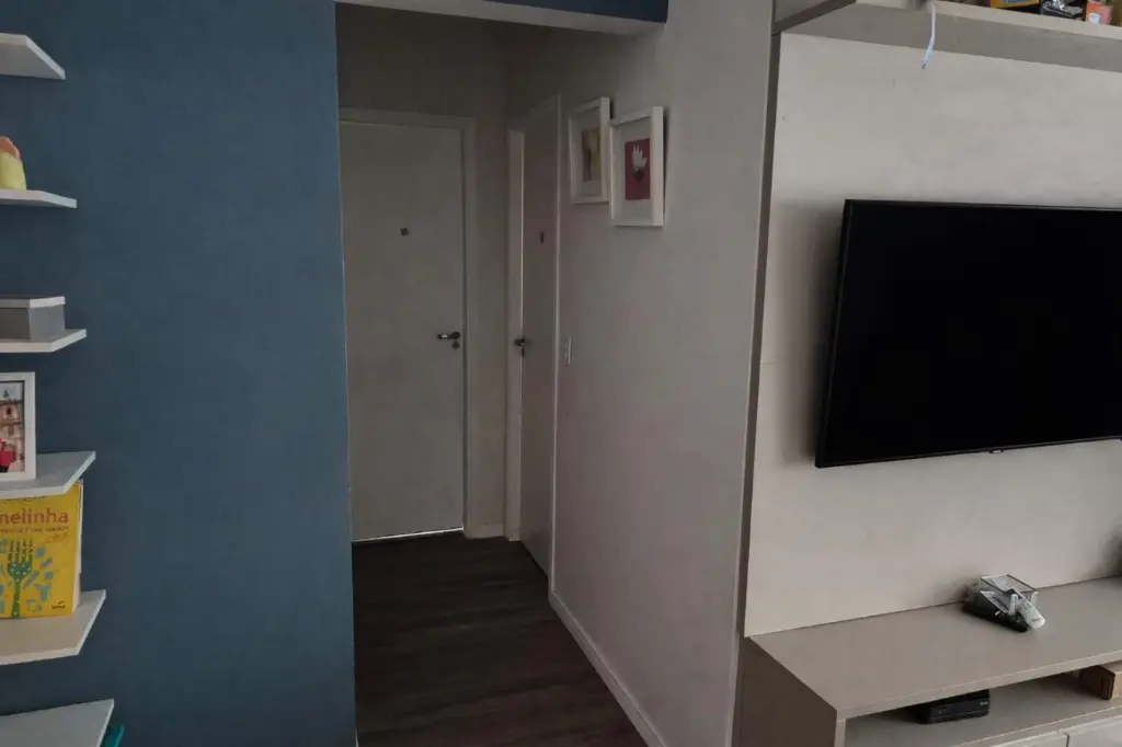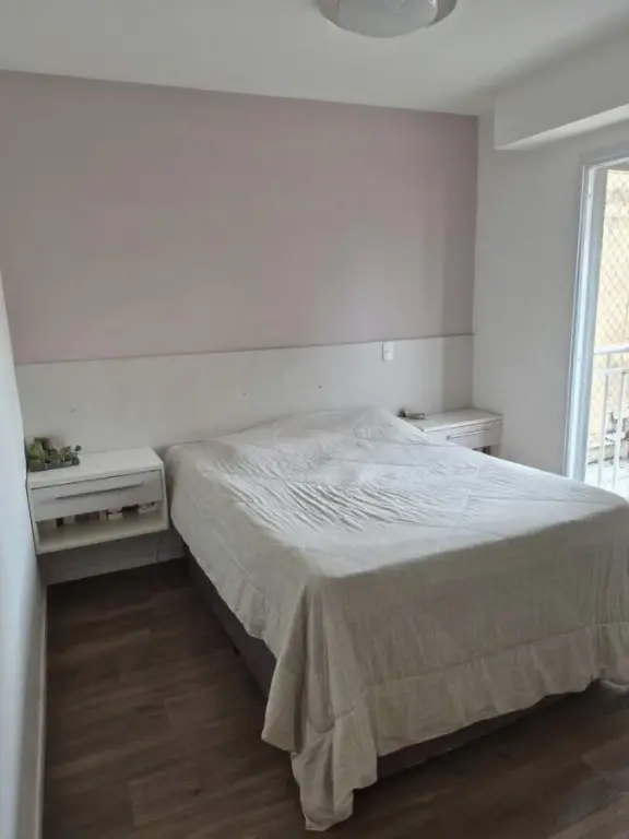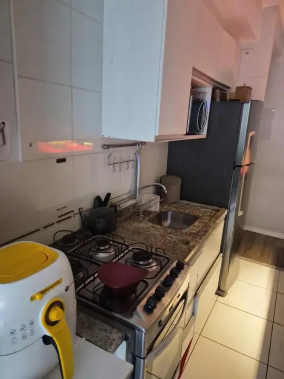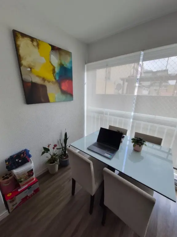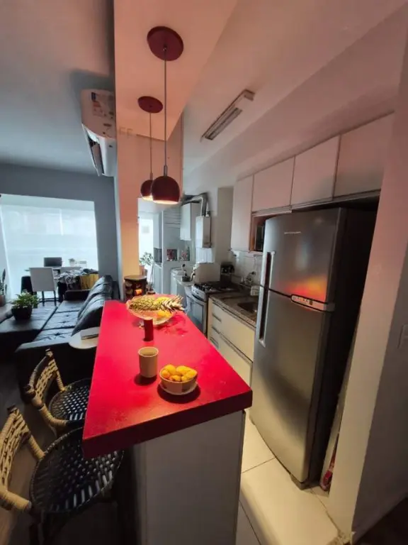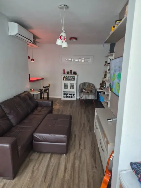 Com 2 dormitórios, sendo 1 suíte, possui 2 banheiros, 1 vaga de garagem, 2 salas, encontra-se mobiliado, localizado em condomínio, aceita permuta.