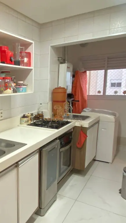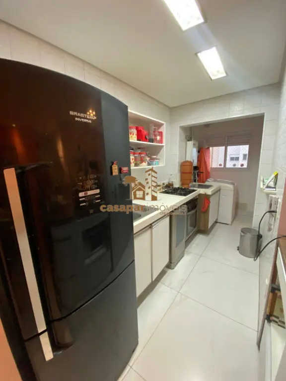 Cozinha americana com móveis planejados, área de serviço prática e funcional