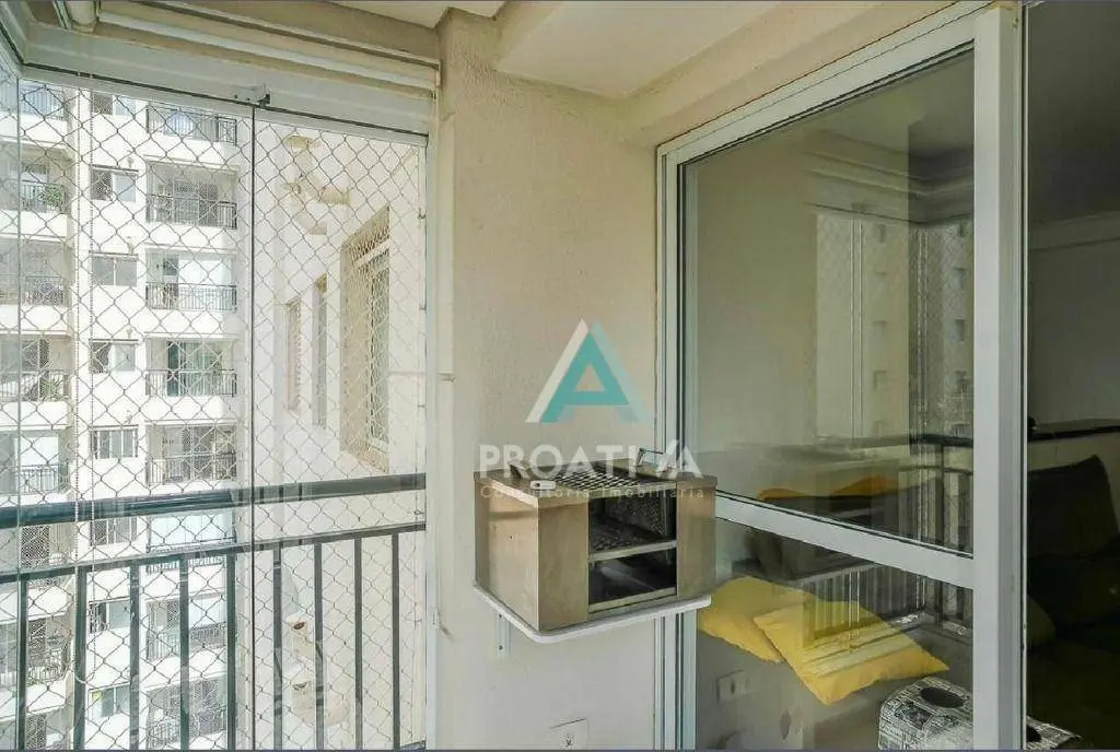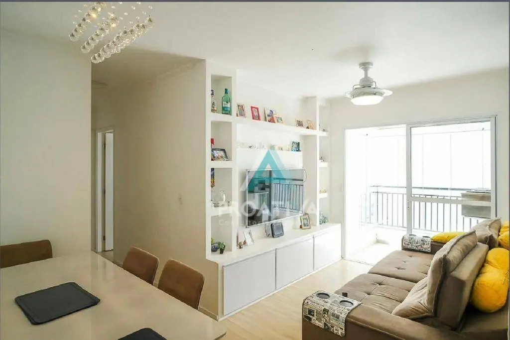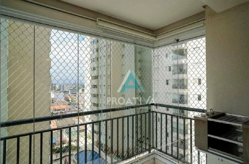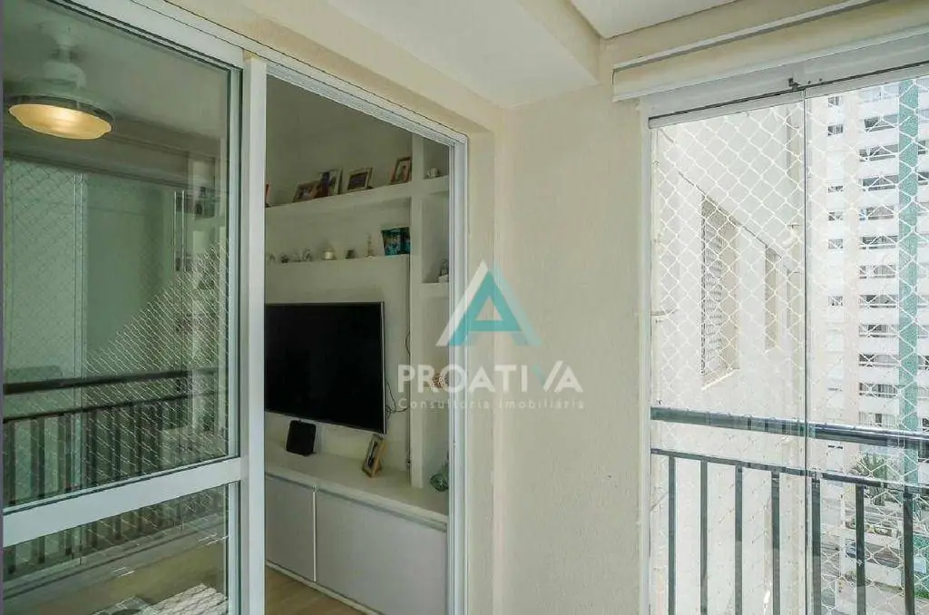 living amplo para 02 ambientes com varanda envidraçada.