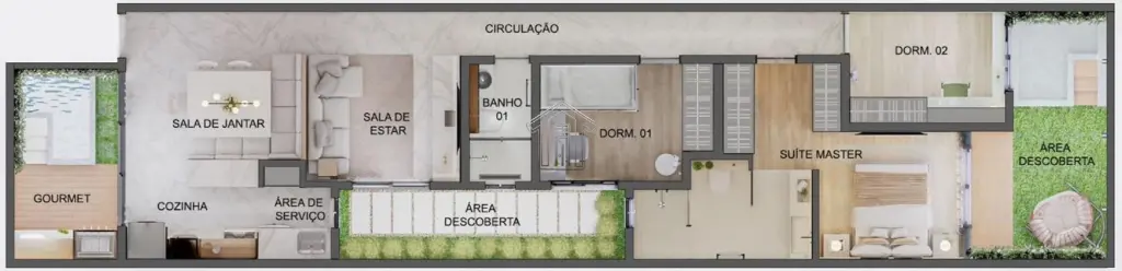 - ?acabamento completo: teto rebaixado de drywall, piso porcelanato, bancadas de pia nos banheiros e na área gourmet e etc.