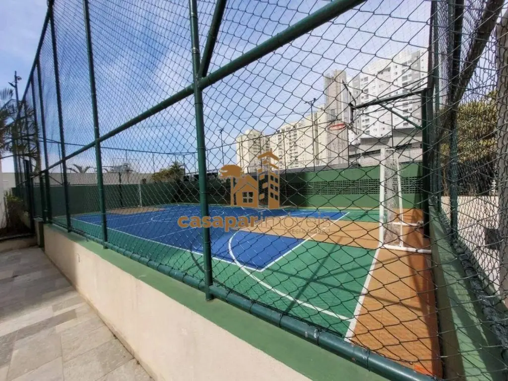 Lazer completo: Piscina adulto e infantil, quadra poliesportiva, academia, salão de festas, salão de jogos, churrasqueira, bicicletário, brinquedoteca, playground, portaria 24 horas, minimercado