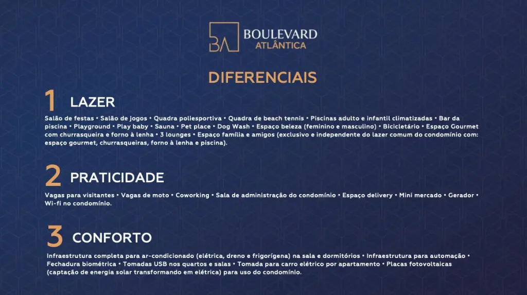 Lazer: Academia, Área de Descanso, Brinquedoteca, Churrasqueira, Coworking, Espaço Games, Espaço Gourmet, Piscina, Playground, Quadra Recreativa, Salão de Festas, Salão de Festas Adulto, Salão de Festas Infantil.