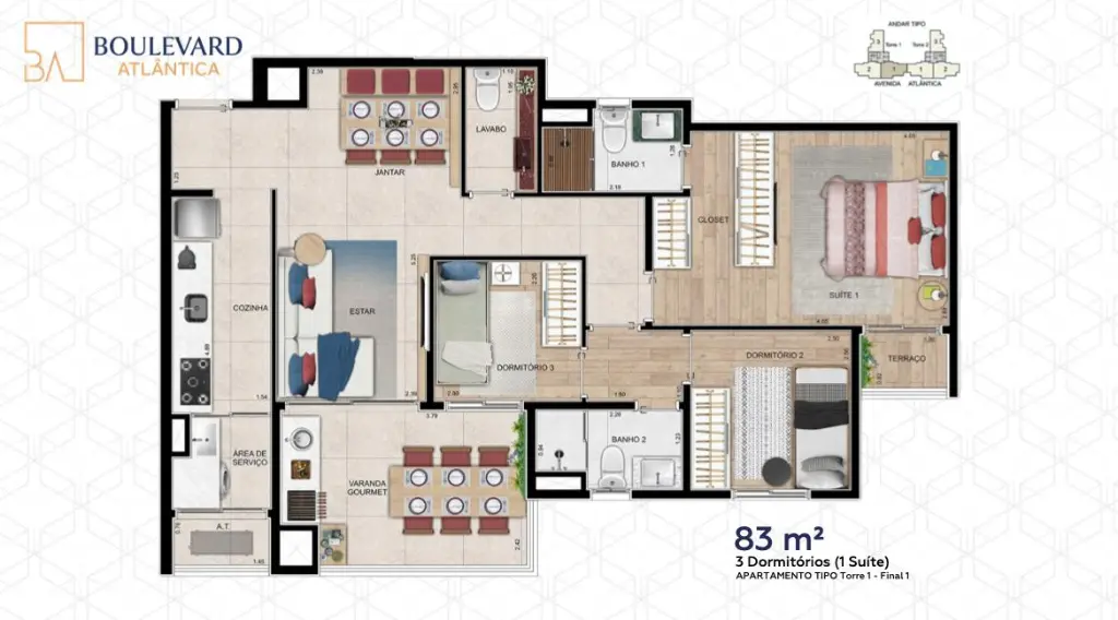 Área Privativa de 83,13 m².