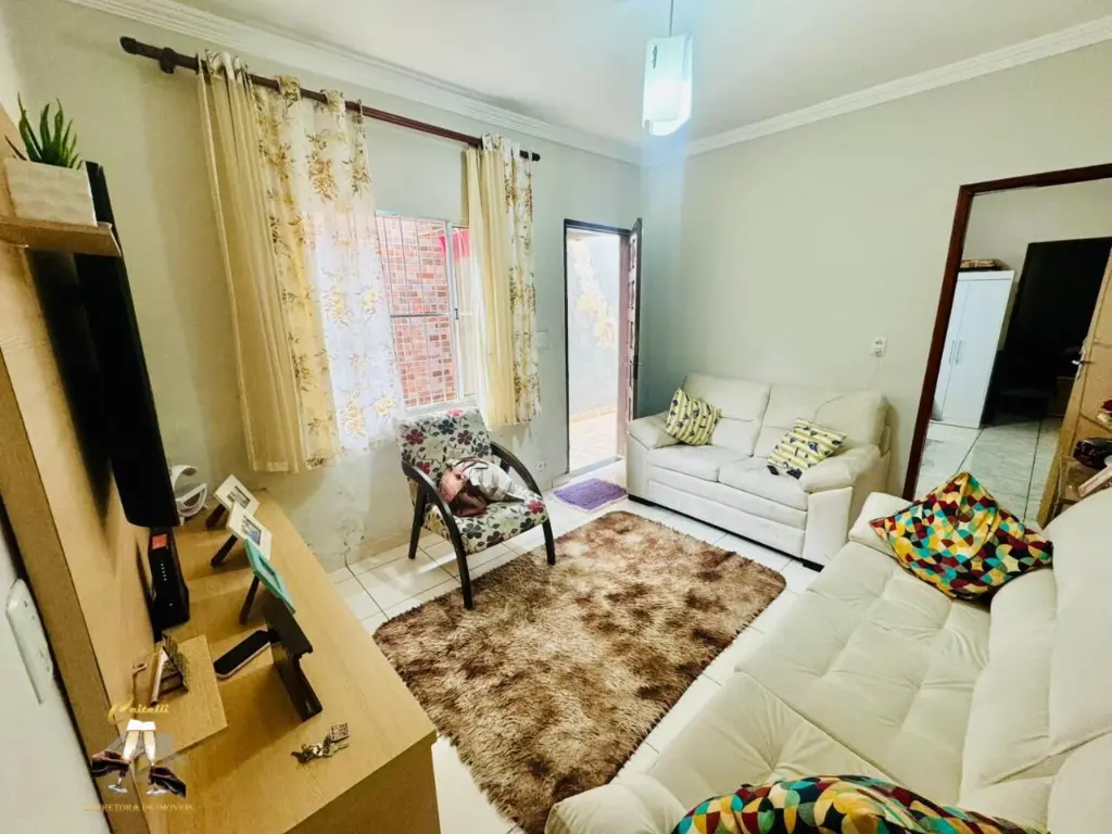 Casa te´rrea, com ambientes amplos e iluminados. Conta com 2 dormito´rios, sala cozinha, banheiro, ampla lavanderia e vaga de garagem para 2 vei´culos com portao automa´tico.