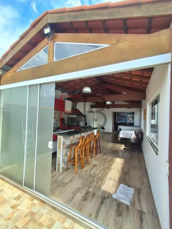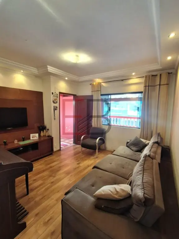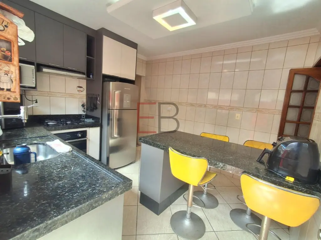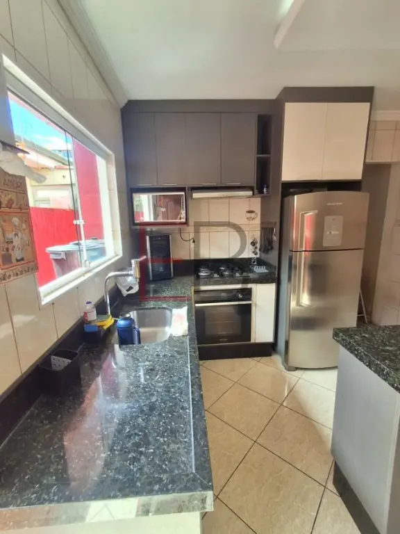 Casa Assobradada à venda no bairro Vila Guaraciaba, em Santo André. Área total construída de 150 m² e conta com 02 dormitórios, sendo 01 suíte, sala espaçosa e varanda, cozinha com ilha, armários planejados, banquetas e forno, banheiro social, área de serviço e uma cobertura com cozinha, lavabo e churrasqueira (parte coberta e envidraçada e outra descoberta). Além de portão eletrônico e área de garagem que comporta dois carros de pequeno porte.