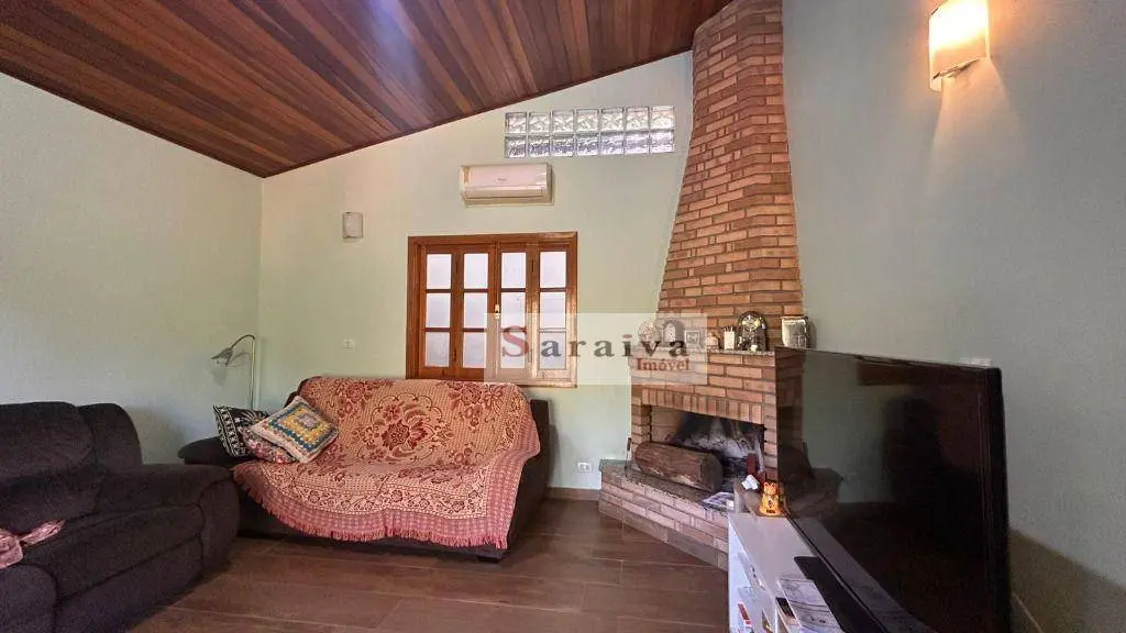 Sala ampla e aconchegante com lareira