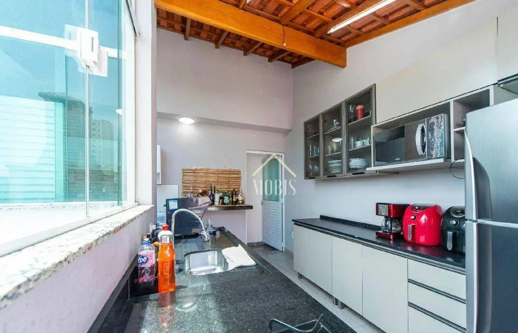 Cozinha no piso superior com armários planejados e pia em granito