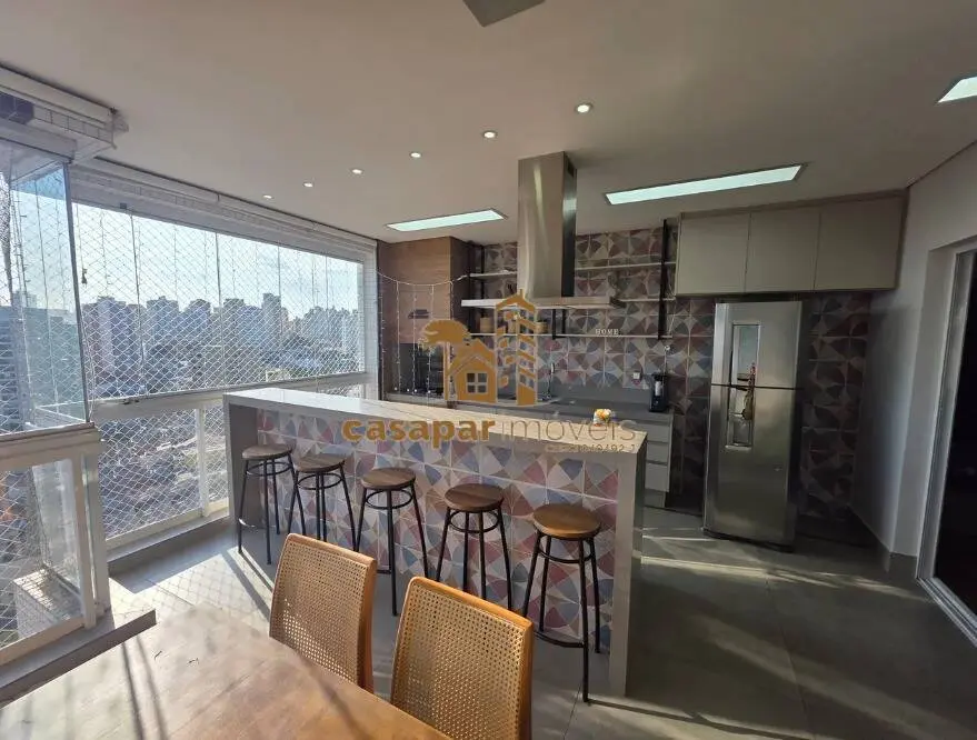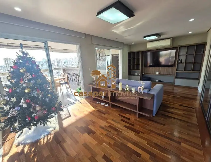 Sala ampla com ar condicionado, lavabo e sacada gourmet