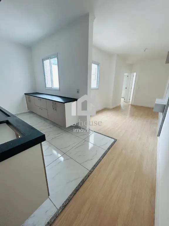 Possui sala para dois ambientes; cozinha com armários; área de serviço coberta; dois dormitórios, sendo um suíte com armários planejados; um banheiro; e duas vagas de garagem