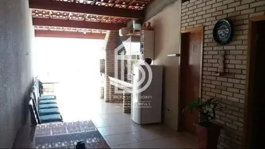 Exclusiva área gourmet coberta com churrasqueira e pia.