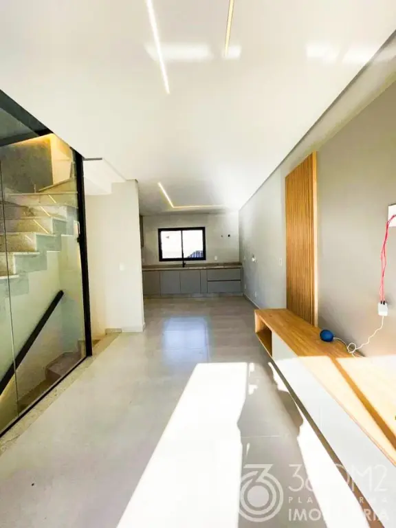Casà110,00m², Sala e cozinha integrada com lavabo, duas suítes com closet, duas vagas grandes cabendo até 3 carros a depender do tamanho, área gourmet com lavabo, escada cascata, corrimão preto com iluminação em led, infraestrutura para ar condicionado, tubulação aquatherm para água aquecida em todos os ambientes, rica em iluminação natural e iluminação decorativa em led e aptos, e nicho nós banheiros, teto rebaixado com cortineiros.R$699.000,00