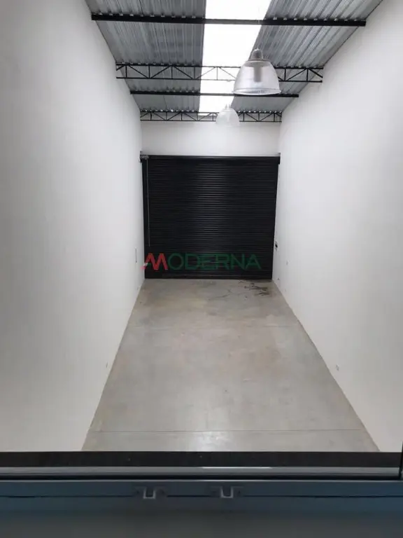 Galpão com 175m², sendo 6 metros de recuo na frente, 4 metros de recuo no fundo, com área coberta, 1 copa, 1 banheiro com acesso para portadores de necessidades especiais e na parte superior, mezanino com 25 m² e 1 banheiro.