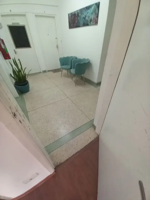 Pédio sem elevador e sem portaria, unidade no primeiro andar, acesso com escadas.