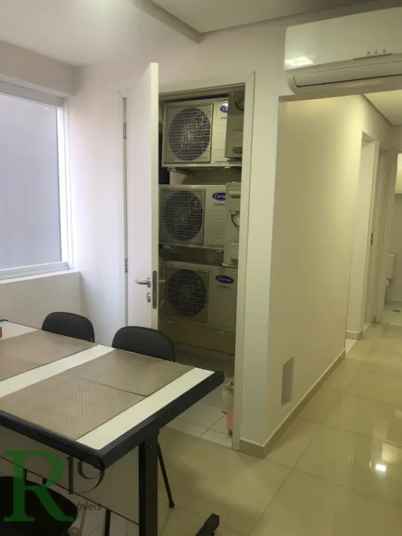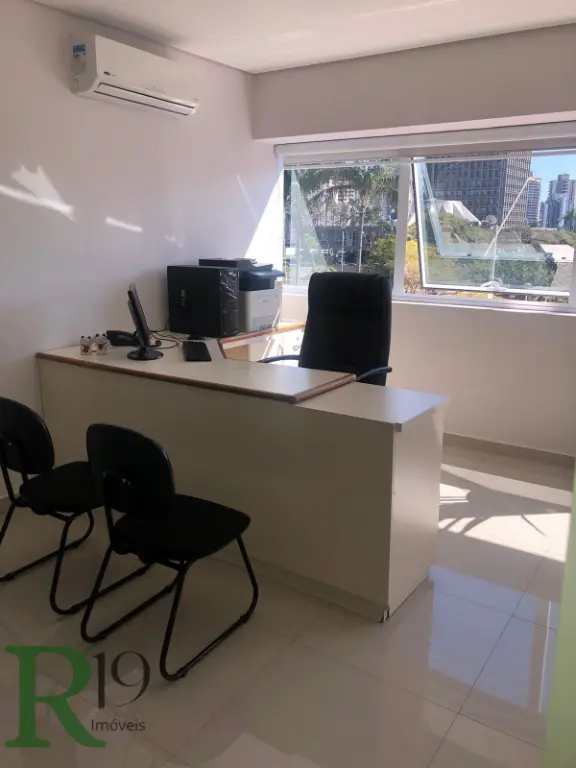 Sala de 84,98m² privativos (área total 183,77m²) com Portaria 24 h, estacionamento com manobrista, 2 vagas de garagem, auditório (em área comum), bicicletário, divisórias de vidro formando 3 ambientesem salas, sala para refeições, cozinha com armários planejados, 2 banheiros com armários planejados, infraestrutura de ar condicionado inclusos, casa de máquinas e cabeamento de rede de internet.