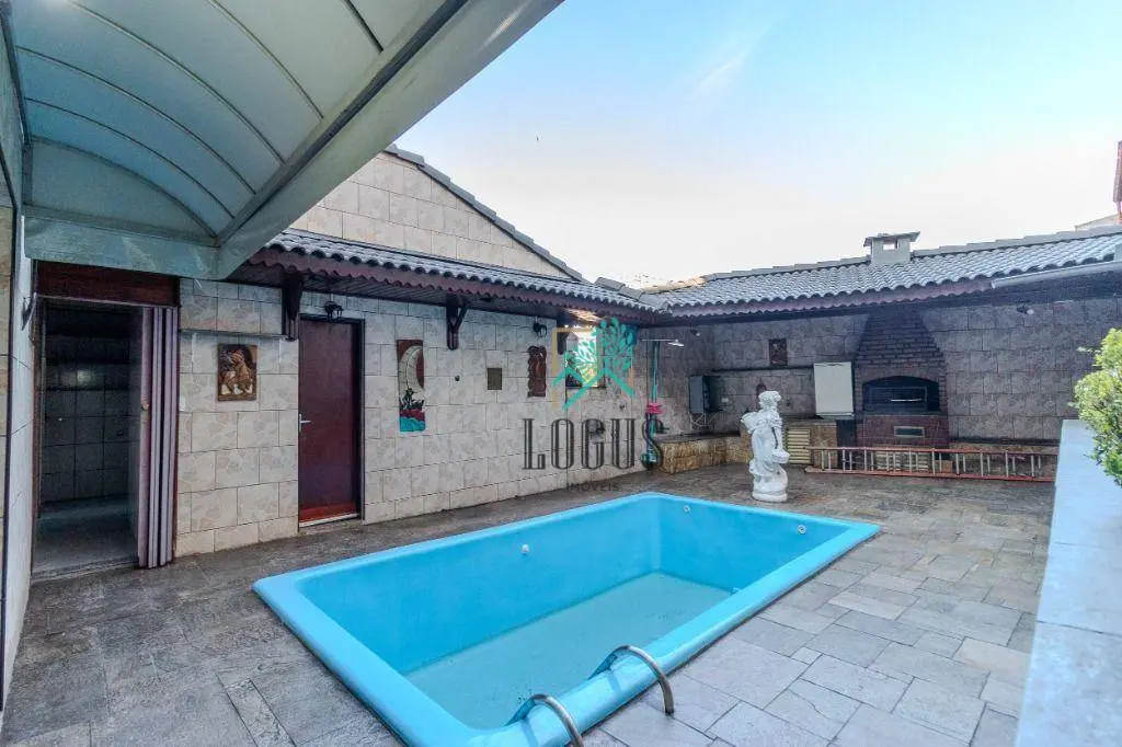 Na área externa, o imóvel se destaca pelo excelente espaço de lazer, com churrasqueira, piscina, jardim e varanda, perfeitos para receber amigos e familiares com conforto e privacidade. A residência conta também com armários embutidos, lavanderia, dormitório de empregada e uma charmosa sala de estar, que valoriza ainda mais o conjunto do imóvel.