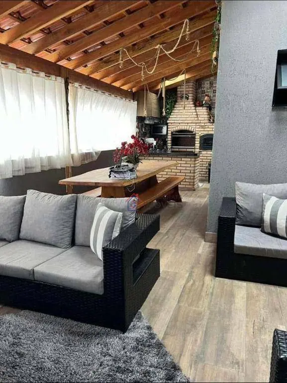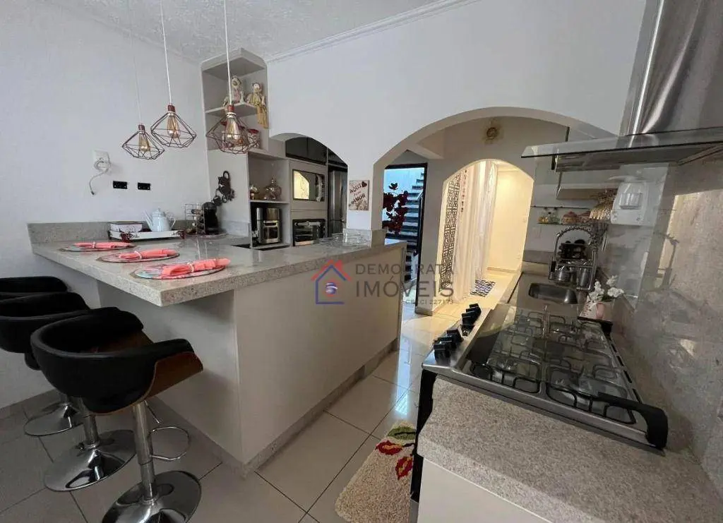 Sobrado com 217m² de área útil e terreno de 125m² de área total. Possui 3 suítes com planejados e 6 banheiros ao total, sala de 2 ambientes, cozinha planejada, área de serviço, espaço gourmet, porão e 4 vagas de garagem. Com sistema de câmeras remoto.
