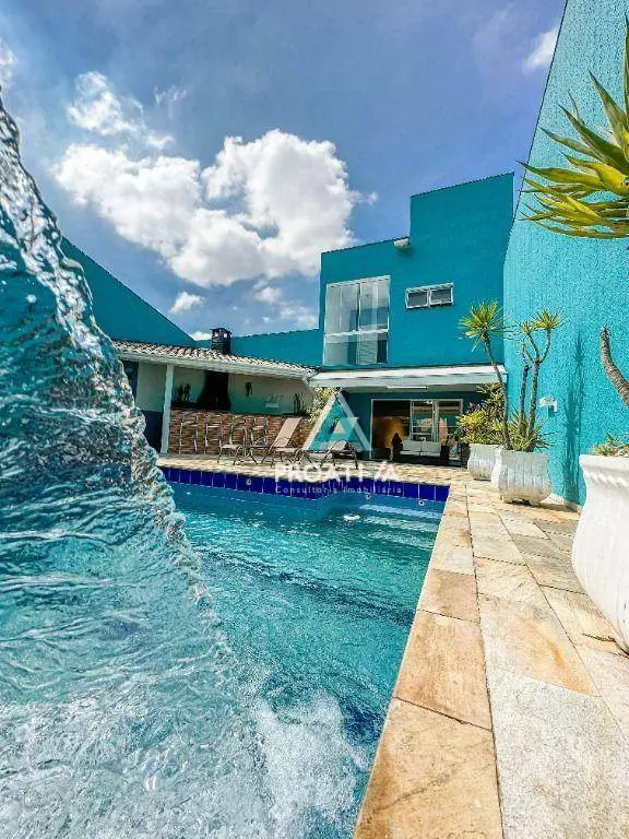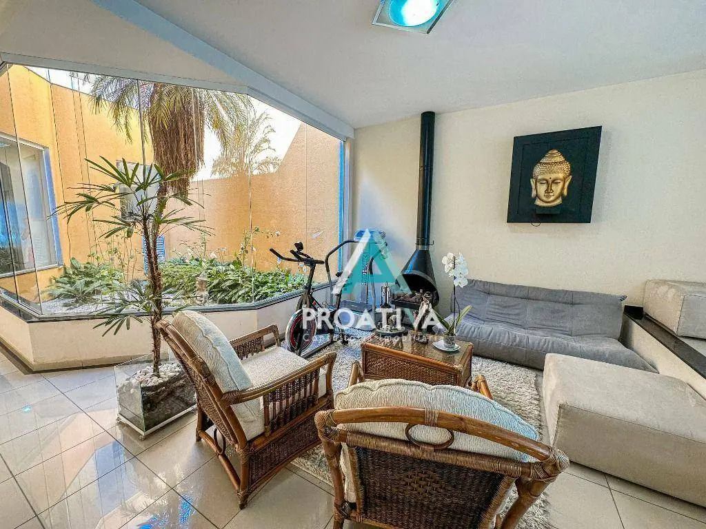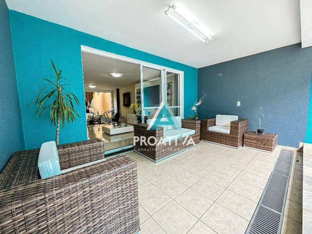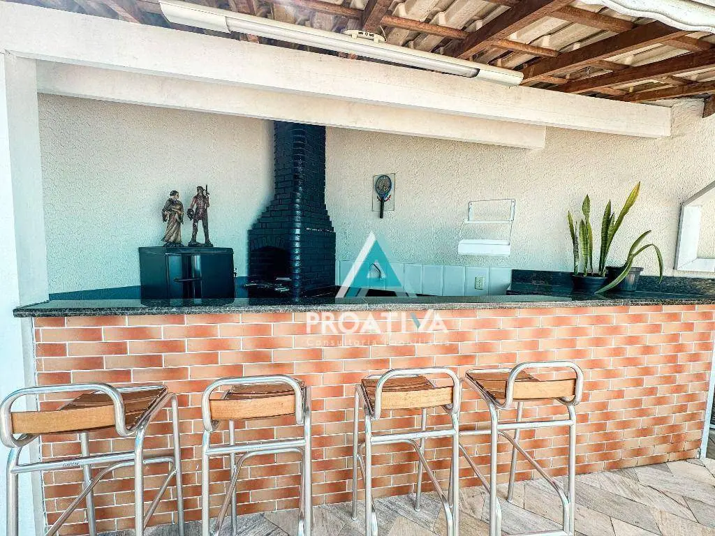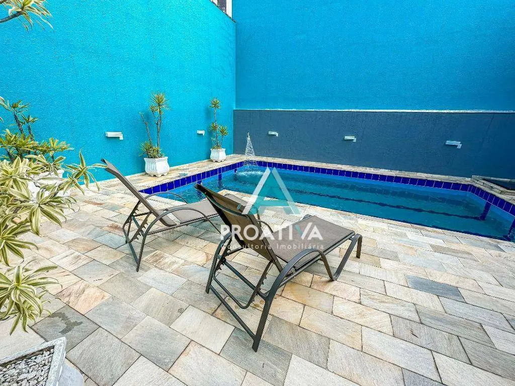 Possui 350m² de área útil distribuídos em 03 suítes, sendo 02 com closet, living 02 ambientes, jardim de inverso, cozinha americana com balcão gourmet, lavabo, área gourmet externa com churrasqueira, piscina e espreguiçadeiras e 03 vagas de garagem.