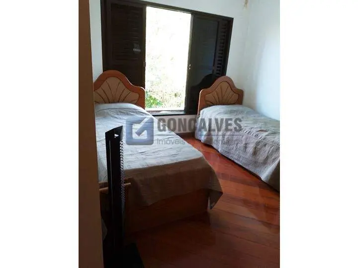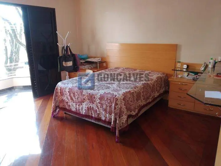Sobrado no Jardim Chacara Inglesa em São Bernardo do Campo com 600m² de area construida Primeiro andar, 4 dormitorios com armarios sendo 3 suites. Piso terreo, sala 2 ambientes, mais 1 sala com lareira, escritorio, lavabo, copa e cozinha com armarios, area de serviço com armario e despensa com 1 banheiro, quintal possui piscina com jardim, area gourmet toda de granito com churrasquira e 1 banheiro, nos fundos subindo uma escada possui edicula com 2 dormitorios, cozinha e 1 banheiro e salão. Subsolo com vaga para 5 automoveis, possui 2 dormitorios e 1 banheiro, corredor com armario e escada que da acesso a parte interna da casa.
