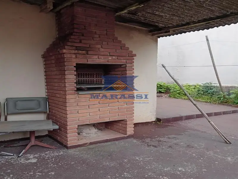 Quintal com churrasqueira, depósito.
