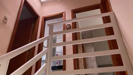 No pavimento superior, encontram-se os três dormitórios, sendo uma suíte que garante mais privacidade ao casala Os demais quartos possuem dimensões equilibradas e atendem bem tanto como dormitórios quanto como home office ou quarto de hóspedes.