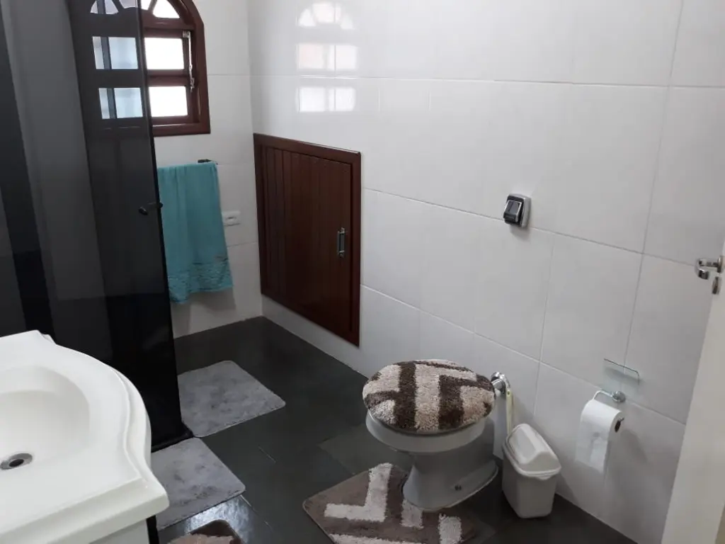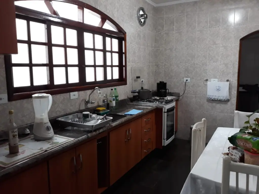 A casa é bem grande e espaçosa, nível da rua possui uma ampla sala de estar, sala de jantar, cozinha e área de serviço com armários planejados, 2 dormitórios, 1 banheiro com box de vidro, quintal, corredores, lavanderia. Em cima tem mais uma sala privativa de tv, 1 dormitório sendo este uma suíte com banheira painel digital e closet. Em baixo possui um amplo salão de festas com churrasqueira para aproximadamente 60 pessoas e mais 1 banheiro, ainda possui mais um espaço para ateliê, oficina, ou escritório com mais 1 banheiro.