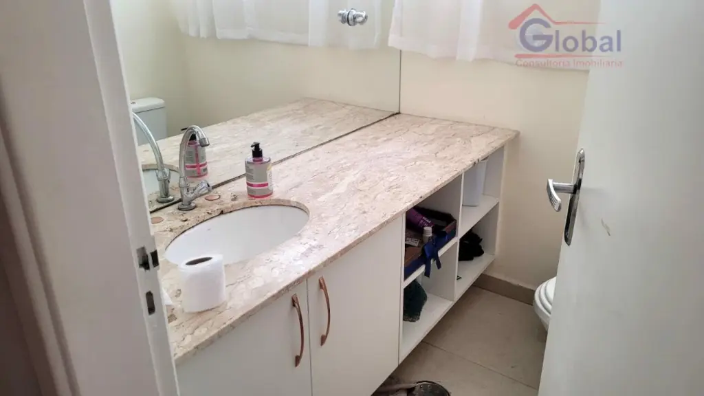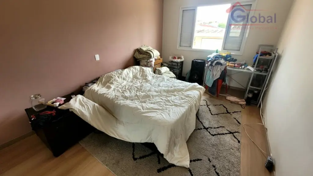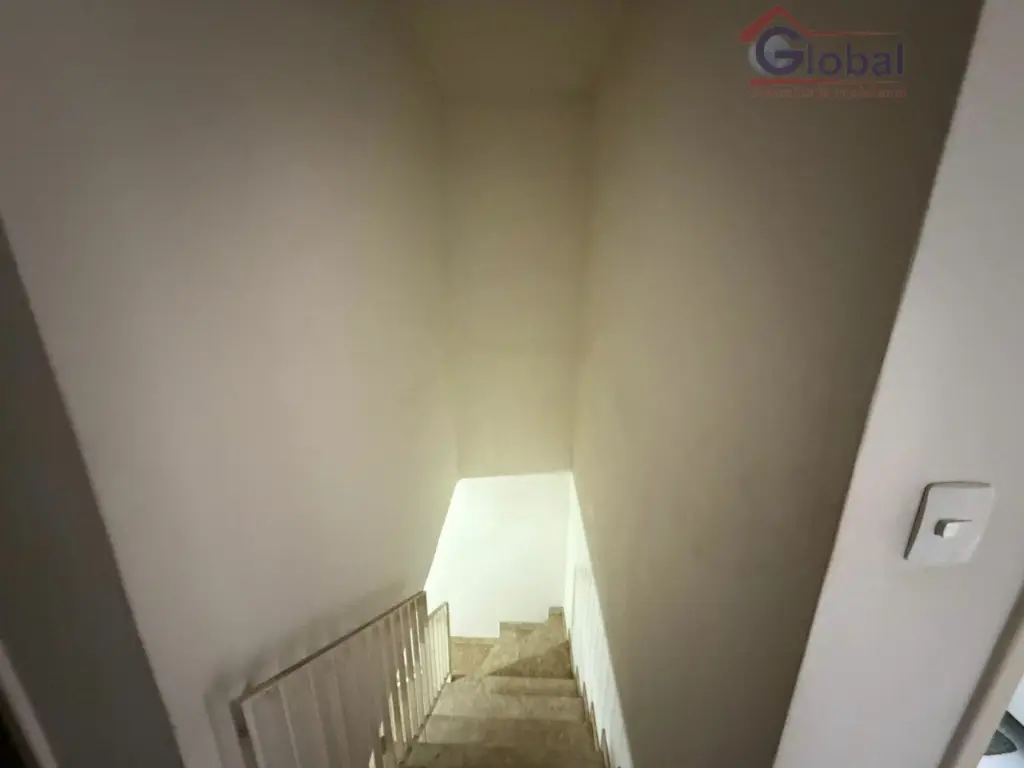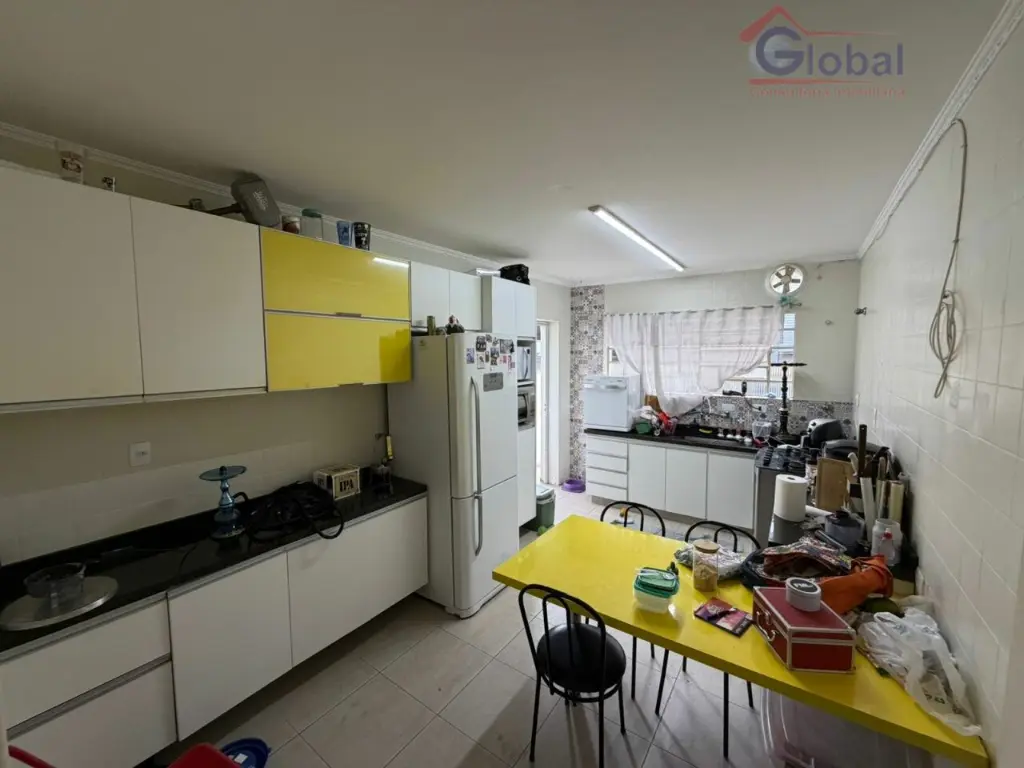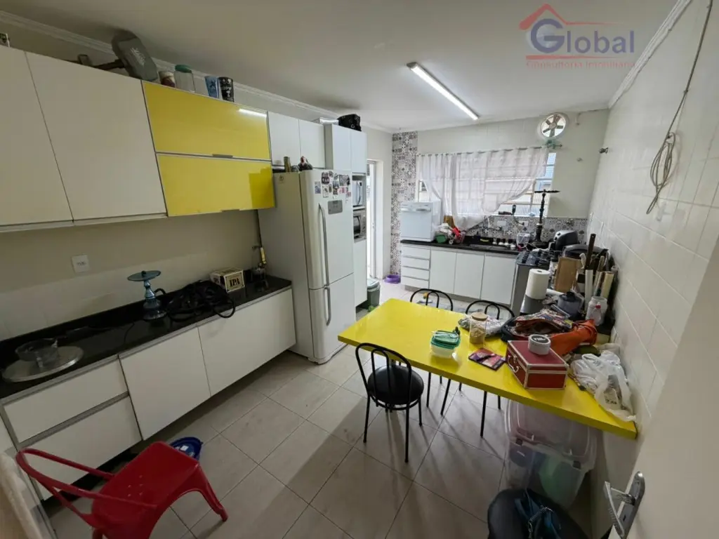 3 dormitórios, 1 banheiro social na parte de cima e na parte de baixo 1 sala ampla, cozinha ampla, 1 lavabo, um quintal pequeno, 1 deposito, 1 deposito para botijão de gás, 1 área de serviço, um banheiro, um quartinho e na parte de cima um quarto, entrada lateral e 2 vagas de garagem.
