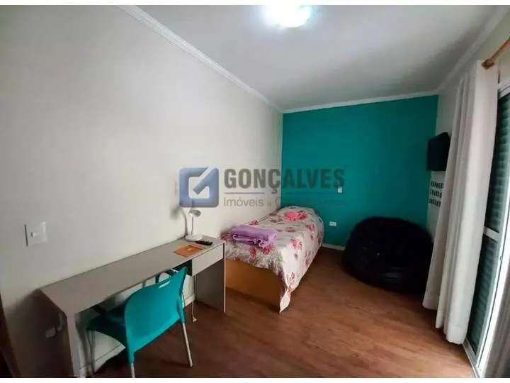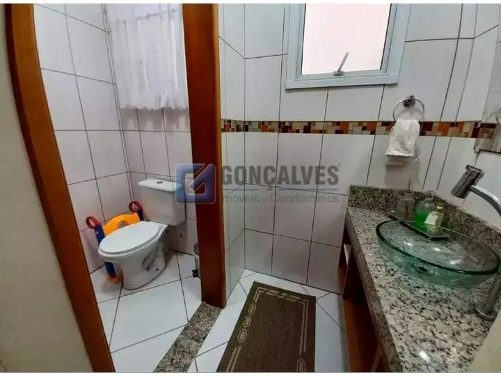 Lindo Sobrado na Vila Linda em Santo André 3 quartos em piso vinilico, 1 suite com sacada e closet, quartos nos fundos com sacada, armário embutido, sala ampla, lavabo com lavanderia separada. Cozinha americana com cooktop. Equipada com energia solar para chuveiro e torneiras.
